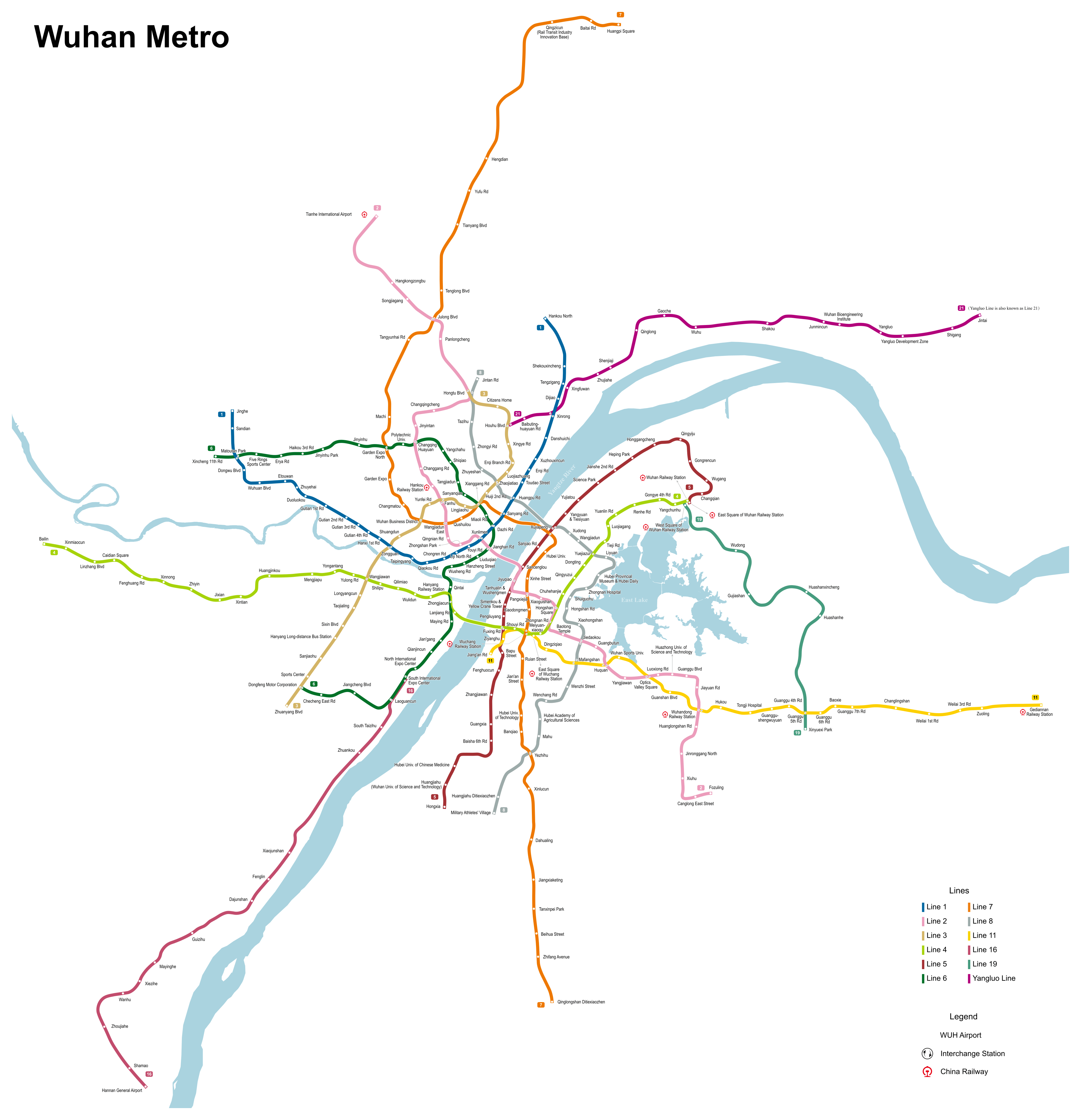 Large map of Wuhan metro in China.